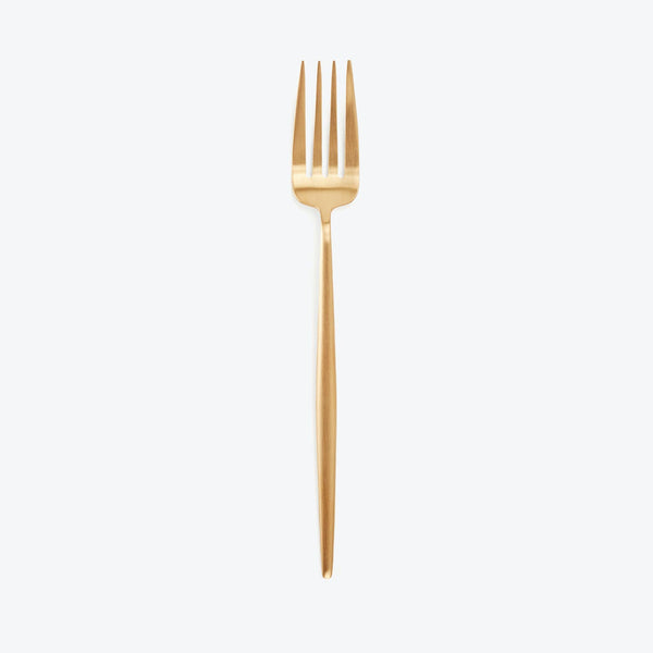 Beautifully rendered in brushed gold, Moon flatware features slender, elongated handles - ergonomically designed for balance and control. Knife blades are crafted from 420 steel, providing strong cutting power and resistance to oxidation. Cutipol breathes a spirit of innovation and well-honed expertise built over generations.