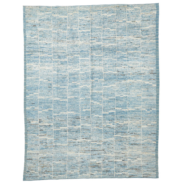 This Moroccan-style rug is wildly woven from hand-carded wool - composing a distinctly natural texture. Voiced in earthy blue tones, each handmade rug is woven spontaneously and unearths the brilliant weaving techniques of the artisans who imagined them. Handmade in Turkey.
