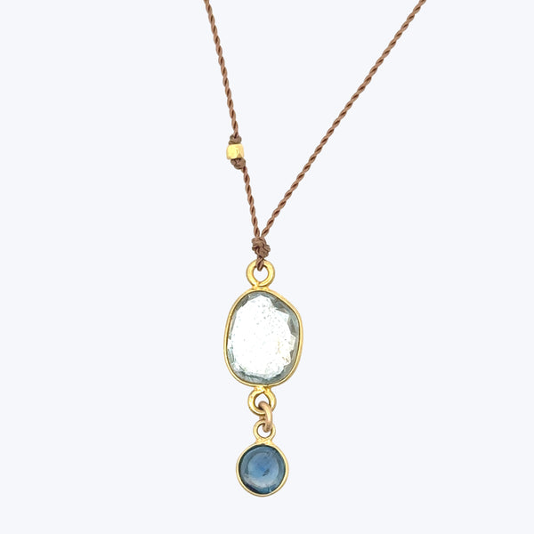 Add elevated whimsy to your look with the Moss Aquamarine + Sapphire Kingfisher Necklace by Margaret Solow. Featuring organic shapes and a beautiful medley of moss aquamarine, sapphire, and gold, this stunning necklace is a study in bohemian refinement. Crafted in the USA with 18K gold details and a 14K gold clasp.