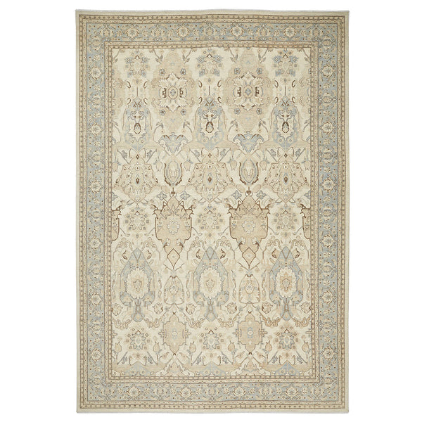 An exemplary of traditional design and craft, this wool rug brings texture and richness to modern spaces.