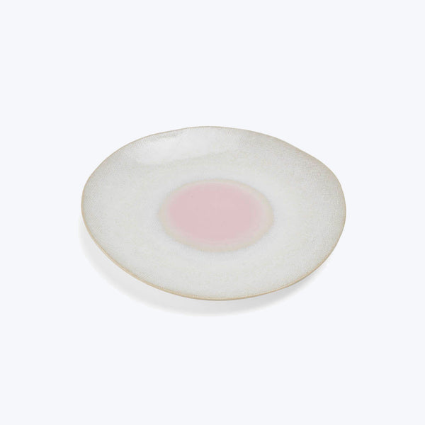 Fusing Eastern and Western styles, philosophies, and techniques, stoneware ceramics are crafted in Thailand. Warm desert hues fade outward from the center, playing with light and shadows to evoke an air of mysticism.