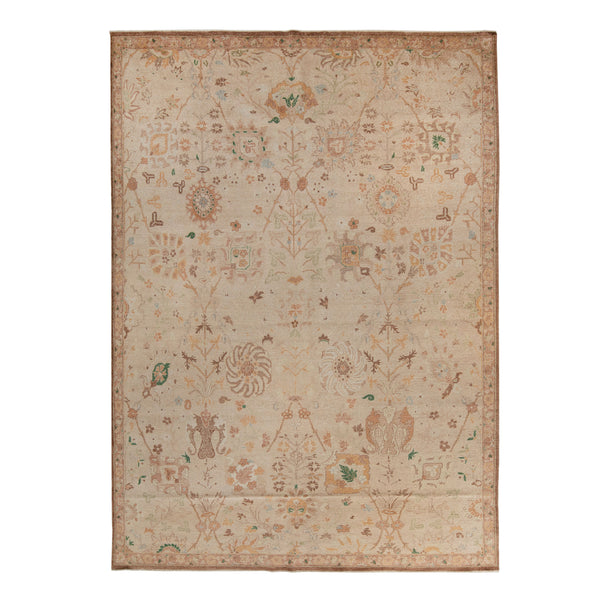 Natural Traditional Silk Wool Linen Blend Rug - 8'11" x 12'2"
