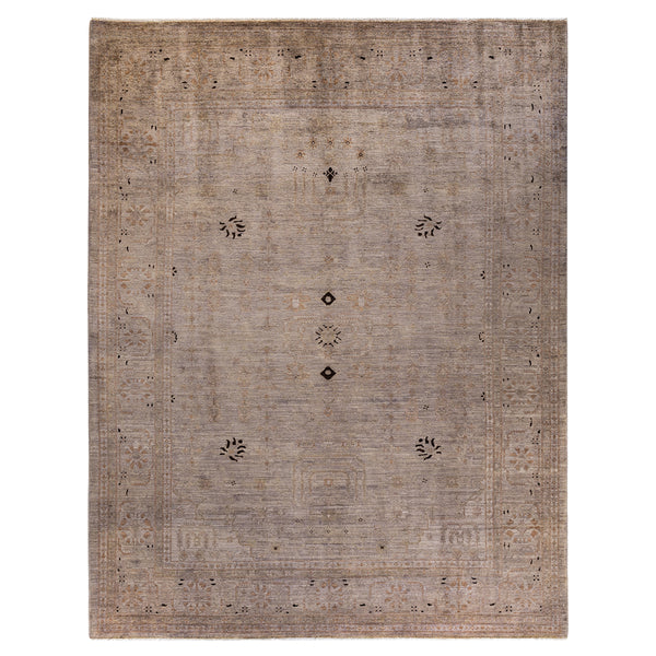 This Tan and Purple Overdyed Transitional Wool Rug - 9'2" x 11'7" epitomizes classic rug designs with a twist: a traditional pattern is overdyed in a brilliant mix of soft purple and neutral tan tones. This hand-knotted area rug is washed in a 100% natural botanical dye that reveals hidden nuances in the unique designs. This one-of-a-kind overdyed rug transcends trends, and its sturdy construction ensures that it’ll withstand years of heavy traffic. This tan and purple rug is finished...
