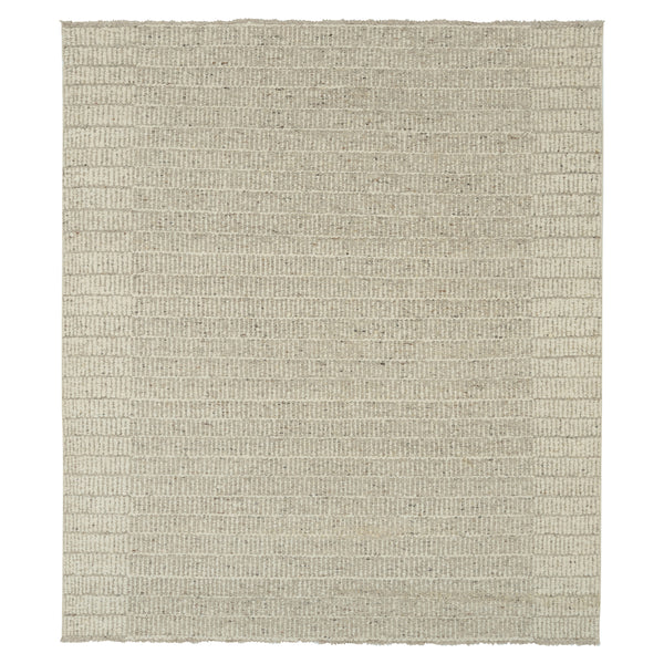 This 8' x 10' Natural Wool Kilim Rug is a hand-woven flatweave piece designed for durability and style. Originating from India, this rug showcases traditional craftsmanship with a modern aesthetic. Its natural color palette offers a versatile foundation for various interior designs. Constructed from 100% pure wool, this kilim rug features a flatweave technique that results in a sturdy, low-profile surface. The hand-woven process creates a distinctive texture, visible as subtle horizontal bands across its surface, adding depth without overt...