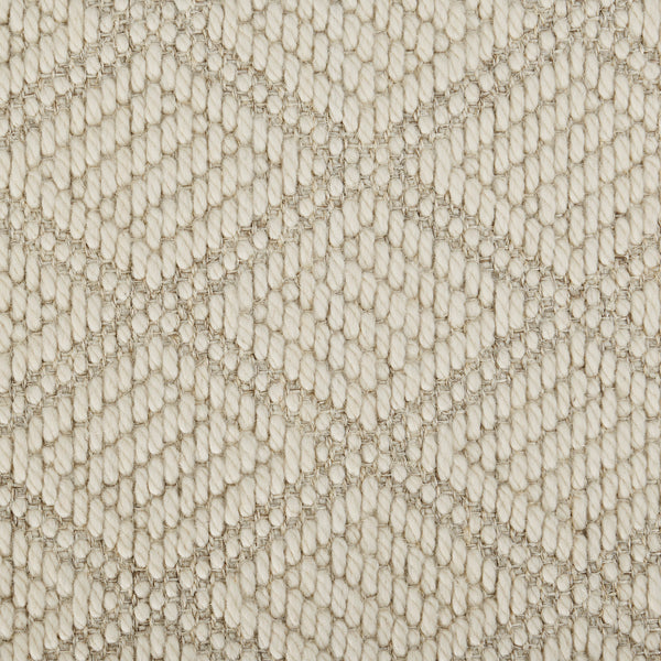 The Jewel Swatch offers a durable and stylish flooring solution, crafted from a New Zealand Wool Sisal Blend. This material combination provides the natural softness and resilience of wool, balanced with the inherent strength and textured feel of sisal fibers. The blend ensures a rug that is both comfortable underfoot and robust enough for daily use in various settings. Featuring a distinct geometric diamond pattern, the design utilizes contrasting tones within the Dove color palette. A lighter, creamy off-white forms...