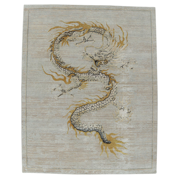 This 8' x 10' contemporary rug presents a natural color palette, offering a versatile foundation for various interior designs. Hand-knotted by artisans in India, this piece is crafted from a blend of wool, silk, and cotton, combining durability with a refined aesthetic. The rug's primary material, wool, provides a resilient and naturally stain-resistant pile, ensuring longevity and a soft texture underfoot. Silk fibers are integrated to introduce a subtle sheen and enhance the definition of the intricate design, while a...