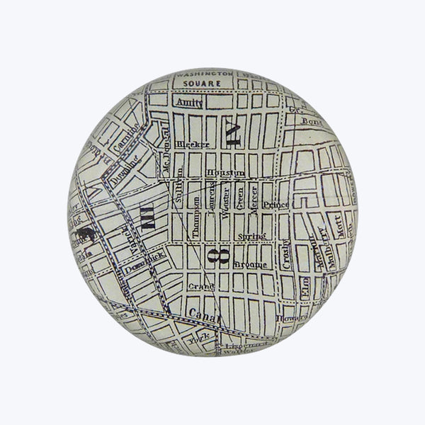 John Derian’s New York Map, Soho Paperweight brings refined nostalgia to any room. Handcrafted in the city it depicts, this elegant paperweight makes a perfect gift for any New Yorker. The New York Map, Soho Paperweight features handblown glass and reproduced imagery from John Derian’s extensive collection of antique and vintage prints. Display it where a touch of Manhattan magic is needed.