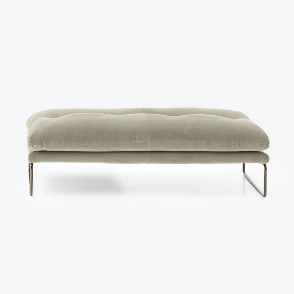 Introducing the New York Suite Long Ottoman, offered exclusively at abc carpet & home. This luxurious piece boasts a thick cushioned form upholstered in sumptuous cotton velvet, ensuring maximum comfort without compromising on style. Its sleek black nickel base elevates any interior with its modern allure. Measuring 55 inches in width, 16.5 inches in height, and 26 inches in depth, this ottoman offers ample space for lounging and relaxation, making it the perfect addition to your living room or cozy...