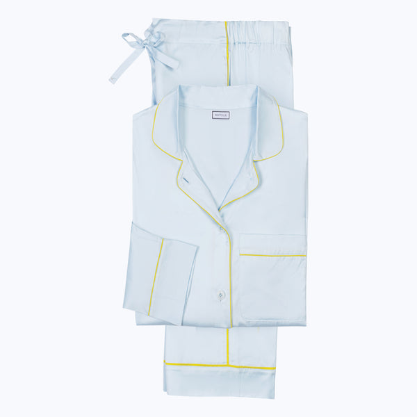 Crafted from luminous Nocturne sateen, we’ve combined the luxury of Matouk sheeting with the comfort of your favorite lived-in dress shirt. The top features natural corozo buttons, piped details, and a scooped hem. The drawstring style with a touch of elastic in the back for extra comfort. Wear them to relax in style at home, or dress them up for days and nights out.