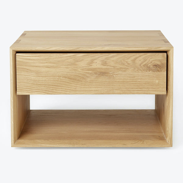 The Nordic II Oak Nightstand seamlessly merges minimalist aesthetics with the inviting warmth of solid oak, making it a timeless addition to any bedroom. Measuring 22.5" W x 8.5" H x 16" D, it features a floating drawer that offers generous storage, while the open space underneath is perfect for displaying books, decor, or other essentials.Part of the Nordic II collection, this nightstand showcases clean lines and a commitment to quality craftsmanship. The natural beauty of the oak wood, characterized...