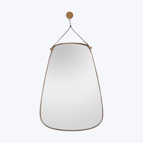 Discover the Norissa Mirror by Arteriors. Featuring a refined minimalist silhouette, the Norissa is an ideal addition to Scandinavian-style spaces. This elegant mirror is framed in warm, antique brass-finished iron, and suspended from a black leather strap. Both decorative and functional, the strap can be adjusted by a sliding cuff, allowing for versatility in styling. Hang vertically.