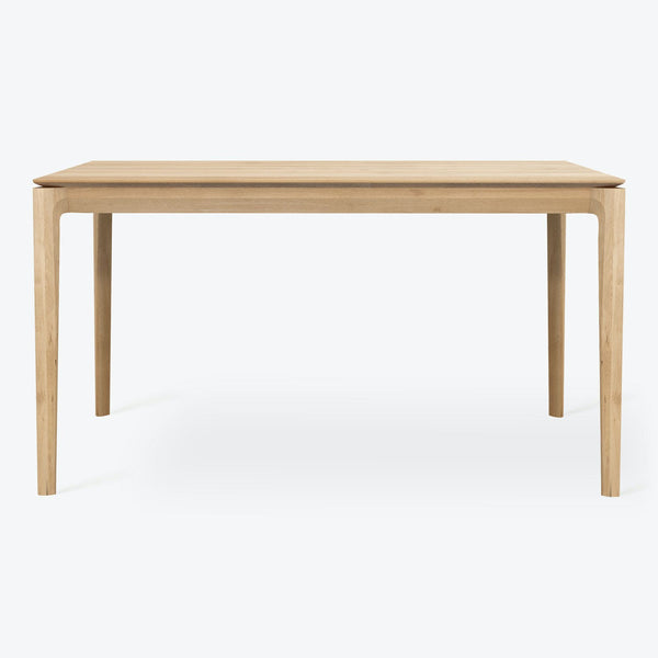 The Bok Dining Table by Ethnicraft is a study in contrasts where airy refinement meets quiet strength and where sculptural simplicity hides remarkable craftsmanship. Crafted in Serbia from solid natural oak or teak and finished in a range of tones including oiled oak, dark brown, black oak, varnished oak, natural teak, and teak brown this table adapts effortlessly to the atmosphere of the room. With sizes ranging from intimate 55-inch lengths to expansive 95-inch versions, each one offers generous surface...