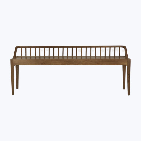 Inspired by the design of traditional spinning wheels, the Oak Spindle Bench from Ethnicraft is a visual masterpiece. Made from solid oak, the backrest of this bench features perfectly aligned spokes that echo its namesake, adding a touch of unexpected whimsy to any space. Each bench is unique, with subtle variations in woodgrain that enhance its inherent beauty and charm, making every piece a one-of-a-kind addition to your home. The Oak Spindle Bench is versatile, designed to enrich any room...