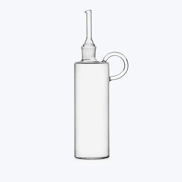 The Oil Bottle is crafted by hand using flame-worked glass, resulting in the perfect tabletop and kitchen accessory to hold your liquid oils for cooking and garnishing. This oil bottle displays the true intent of creation - the pursuit of beauty with authentic shapes. Each piece is handmade resulting in some irregularities that are natural to the process.