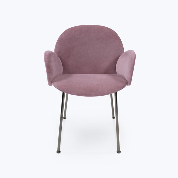 Discover the glamour of rounded form in the Ola Dining Armchair by Saba Italia. Upholstered in a cotton blend, this elegant armchair couples art deco curves with modern, industrial legs finished in black nickel. An elevating addition to contemporary and modern interiors. Made in Italy.