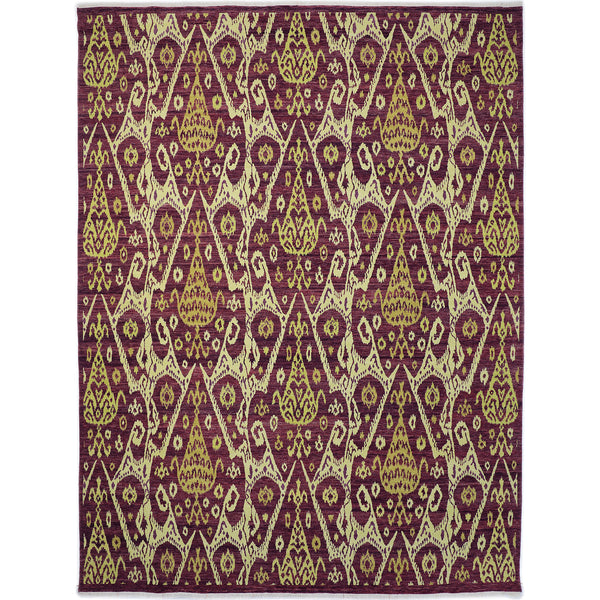 This One-of-a-Kind, Hand-Knotted Area Rug - 10'1" x 13'5" features a geometric pattern in eye-catching shades of purple and green. Hand-crafted rugs are created over many months using techniques that have been passed down from generation to generation. This level of detailed craftsmanship means this one-of-a-kind rug is made to last. Hand-knotted and colored using plant-based dyes, this rug features rich, saturated colors that are eco-friendly and free from harsh chemicals and synthetic compounds.