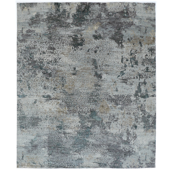 This One-of-a-Kind, Hand-Knotted Area Rug - 8'0" x 9'10" features an abstract pattern in neutral shades of grey, silver, and blue. Hand-crafted rugs are created over many months using techniques that have been passed down from generation to generation. This level of detailed craftsmanship means this one-of-a-kind rug is made to last. Hand-knotted and colored using plant-based dyes, this rug features rich, saturated colors that are eco-friendly and free from harsh chemicals and synthetic compounds.