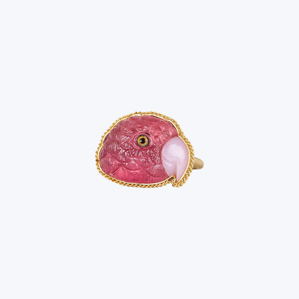 One of a Kind Tourmaline and Pink Opal Parrot Ring