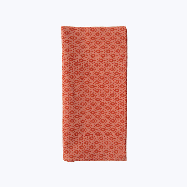 This 100% organic cotton napkin is produced by the special collaboration of 2 woman-owned artisan studios in India. The base fabric is first naturally dyed by Adiv Pure Nature using marigolds upcycled from temple offerings, then dyed Indigo. Tharangini Studio hand-block prints the patterns with organic ink using hand-carved blocks to create each individual piece.