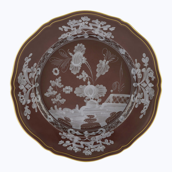 This Oriente Flat Dinner Plate is a stunning piece of porcelain dinnerware from Ginori 1735 that's not only a work of art but also a piece of history – the atelier of expert artisans was founded in the 18th century, merging timeless elegance with beautiful craftsmanship. Full of lovely details and striking color, this dinner plate brings a touch of wonder to your tabletop.