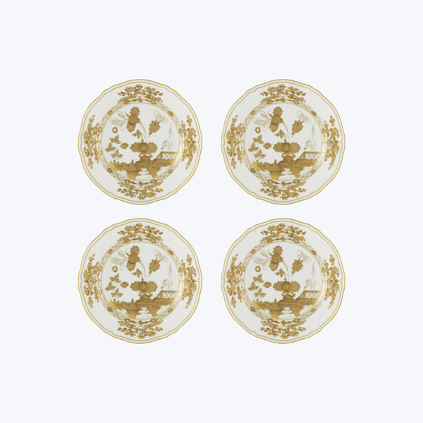 The Oriente Italiano Coasters, Set of 4 by Ginori 1735 marries Italian opulence with ancient Asian motifs. Crafted in fine porcelain, this beautiful set of four coasters boasts a stunning ornate pattern accentuated by hand-painted gold trim. An exquisite addition to any table. Made in Italy. Available in shades of Aurum, Azalea, and Iris.