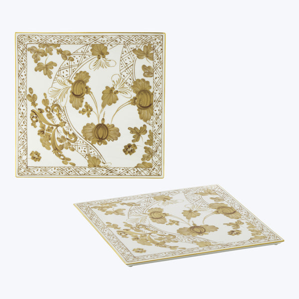 The Oriente Italiano Porcelain Placemats, Set of 2 by Ginori 1735 feature a hand-painted gold edge on a beautiful porcelain surface. Inspired by ancient Asian art, as well as the porcelain atelier’s Italian heritage, these refined placemats are works of timeless beauty, adding an elegant touch to any table setting. Made in Italy. Available in shades of Aurum, Azalea, and Iris.