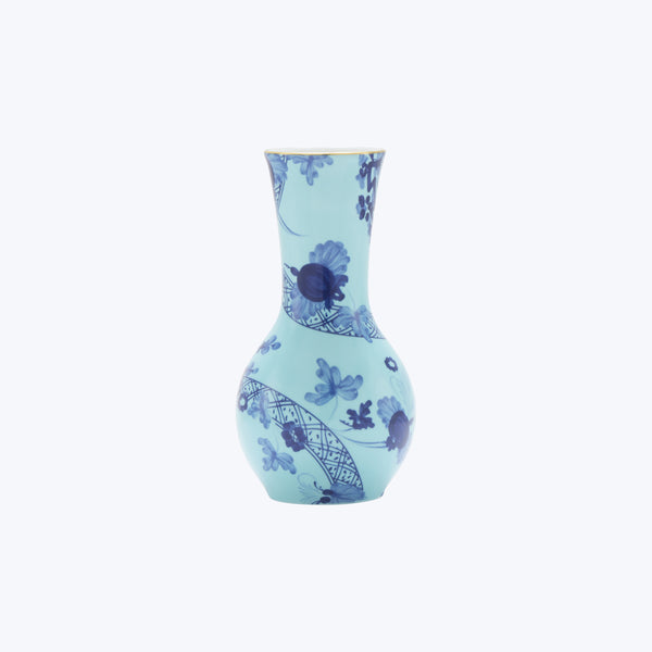 The Oriente Italiano Tulipano Vase by Ginori 1735 is an object of enduring beauty and exceptional craftsmanship. Made in fine porcelain by Italian artisans and inspired by ancient Asian floral motifs, this stunning vase features a hand-painted gold edge and delicate blossoms that follow the curves of its elegant silhouette. An exquisite addition to any home. Available in shades of Aurum,Azalea, and Iris.