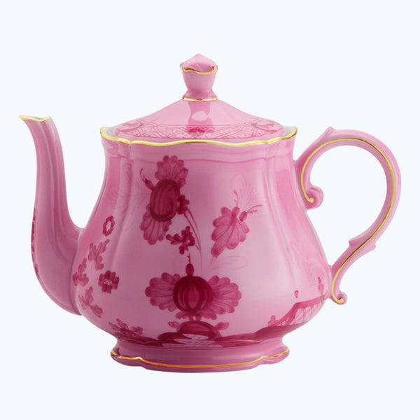 The Oriente Teapot from the porcelain dinnerware collection by Ginori 1735 is a work of art and a piece of history. The atelier of expert artisans was founded in the 18th century, merging timeless elegance with beautiful craftsmanship. Full of lovely details and striking color, these pieces bring a touch of wonder to your tabletop.