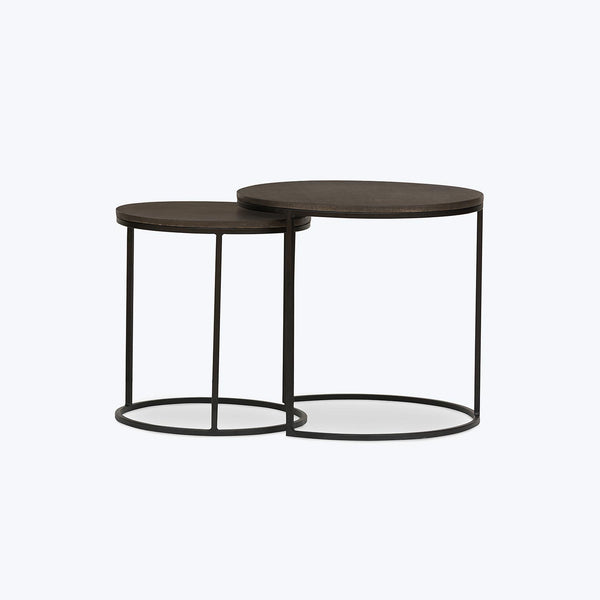 These outdoor nesting tables offer high-end, weather-resistant style for those who are crafting outdoor spaces with a thoughtful design eye. Elegant silhouettes matched with high-quality, robust performance materials that won't fade or tear. Crafted from iron and designed with a black lavastone top, the two nesting tables are sealed with a protective wax that will last the test of time.