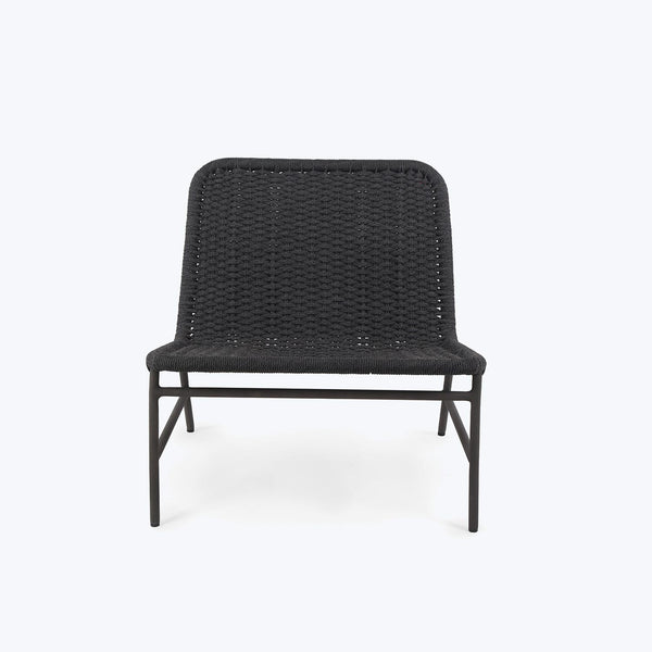 This outdoor woven lounge chair offers a high-end, weather-resistant style for those who are crafting outdoor spaces with a thoughtful design eye. Elegant silhouettes matched with high-quality, robust performance materials that won't fade or tear. Resting on a black aluminum frame, the woven chair is made of outdoor polymer rope.