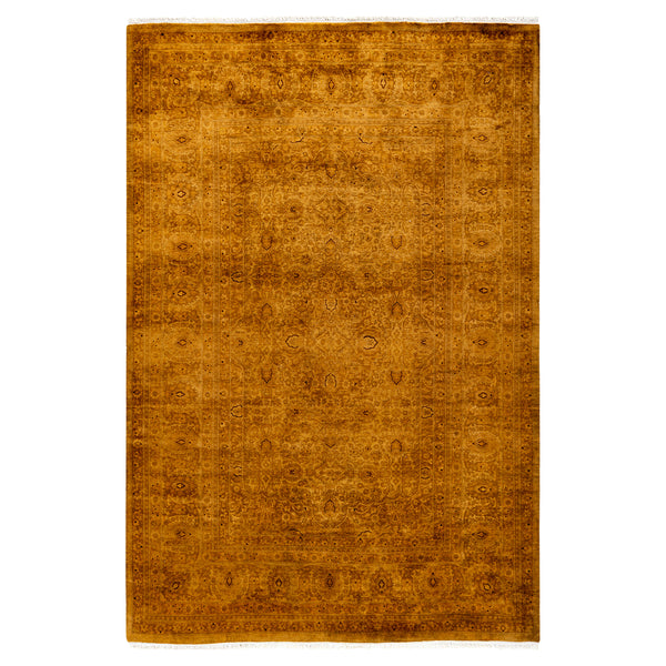 This Gold Overdyed Wool Rug - 4'7" x 6'7" epitomizes classic with a twist: a traditional pattern overdyed in a brilliant golden yellow color. This hand-knotted rug is washed in a 100% natural botanical dye that reveals hidden nuances in the unique designs. This one-of-a-kind overdyed rug transcends trends, and its sturdy construction ensures that it’ll withstand years of heavy traffic. Finished with a traditional fringe.
