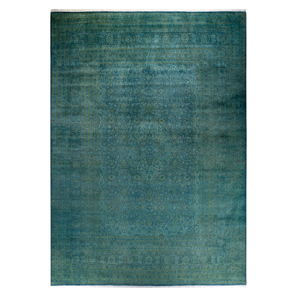The Teal Overdyed Wool Rug is a stunning 10'2" x 14'6" area rug in shades of blue and green. Hand-knotted with intricate floral and geometric motifs, this high-quality wool rug features a central medallion and detailed borders for an elegant finish.