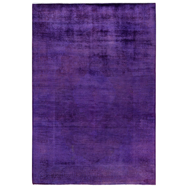 This Purple Overdyed Wool Rug - 5'1" x 7'7" is a luxurious addition to any space. Hand Knotted in Pakistan from 100% Wool, this purple overdyed rug features a rich, consistent texture with subtle variations in shading. Its vintage marbled appearance and minimalist design make it a sophisticated choice for your home.