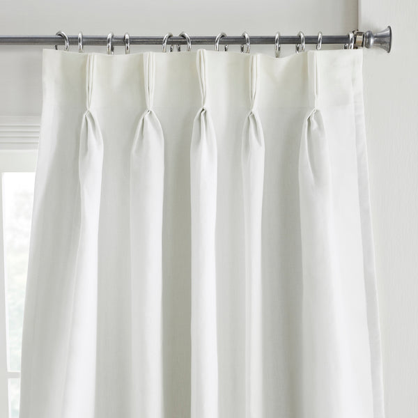 Elevate your interiors with the natural elegance of the Oxford Pinch Pleat Curtain Panel by abc home. Crafted in a beautiful linen and cotton blend and designed with blackout lining, this classic curtain panel enhances light filtration while providing complete privacy. Its neutral hue complements any décor scheme, making it an easy choice for your living room, dining room, or bedroom. Available in Natural and White, as well as 84", 96", 108", and 120" sizes. Made in India.