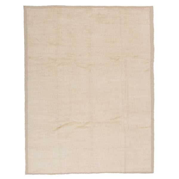 This Moroccan Style Berber Rug features a solid cream tone serving as a modern retelling of traditional Moroccan rugs. The Tarzi Rug Collection features Moroccan Berber-style rugs hand-knotted from durable wool that is hand-dyed from natural pigments. Originating from tribal designs in Morocco's Atlas Mountains, this one-of-a-kind rug reimagines large and oversized Moroccan rugs in modern sizes. A beautiful display of art and culture for the contemporary home.