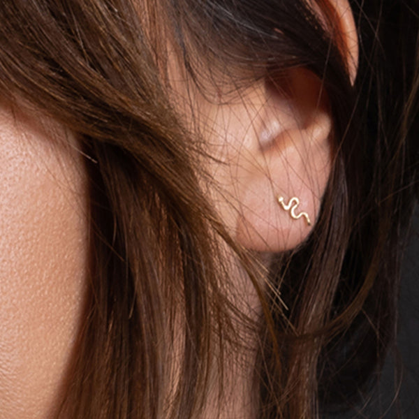 This sweet, little Pair of Snake Studs are made to bring you strength against fear and the power of renewal. These Itty Bitty Snake Stud Earrings are available in 14k gold and sterling silver. Snake charm measures 6mm x 1mm.
