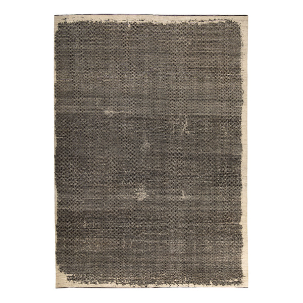 This contemporary rug measures 9' x 12' and features a Black and Ivory color scheme. The Stelle design presents a finely textured pattern, appearing as a dense scattering of dark tones across an ivory base. This creates a visually dynamic surface with a distressed, almost speckled effect, suitable for modern interior styles. Crafted from Tibetan wool, this rug is hand-tufted in Nepal. The hand-tufting technique contributes to its durable construction and a soft feel underfoot. Tibetan wool is known for...