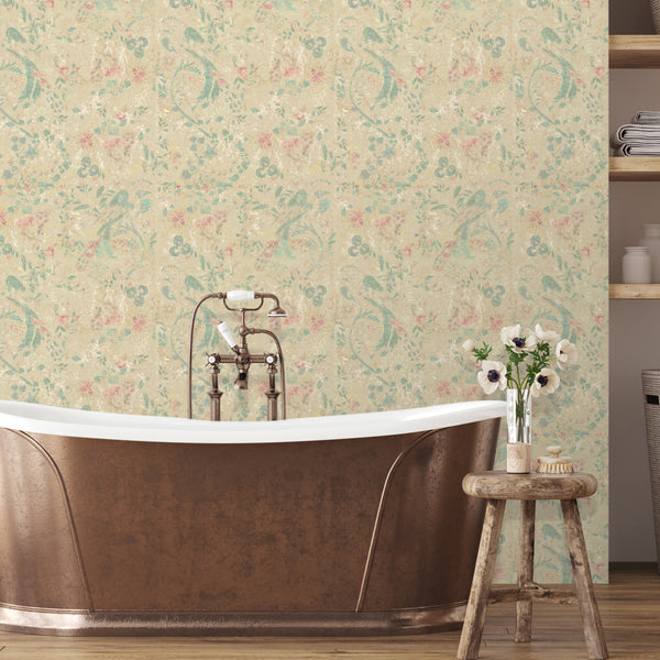 Elevate your space with the vintage elegance of Yuki Osada’s Peacock Garden. This exquisite wallpaper is designed with a distressed look, making it an ideal complement to antique-furnished interiors. Available in Muted Green, Muted Rose, Muted Sand, and Muted Teal. Yuki Osada is a celebrated CAD designer, graphic artist, and illustrator known for her playful prints.