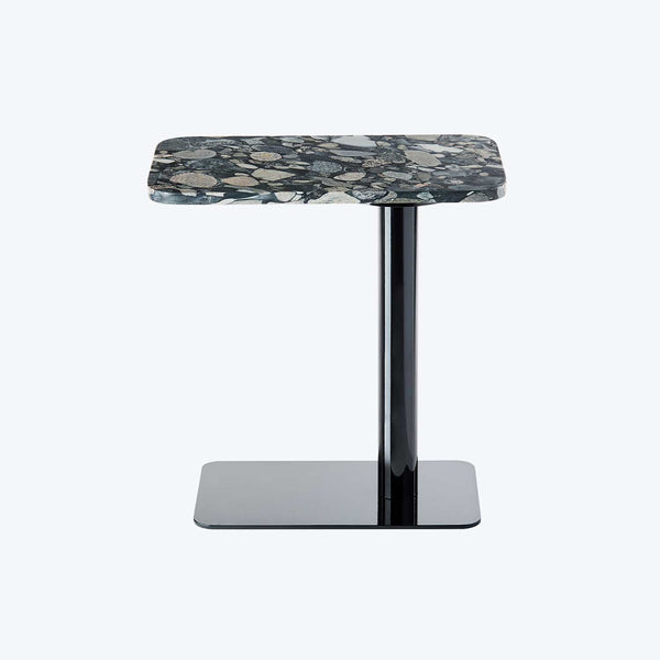 The Pebble Side Table by Tom Dixon is a striking modern end table that blends sleek design with the raw beauty of natural stone. Featuring a glossy black steel base, this table showcases a stone top crafted from colorful marble sourced from the Shandong and Fujian provinces of China. With dimensions of 19.7" L x 19.7" H x 11.8" D, this table is the perfect size for side or accent use in any contemporary living room or entryway. Made in...