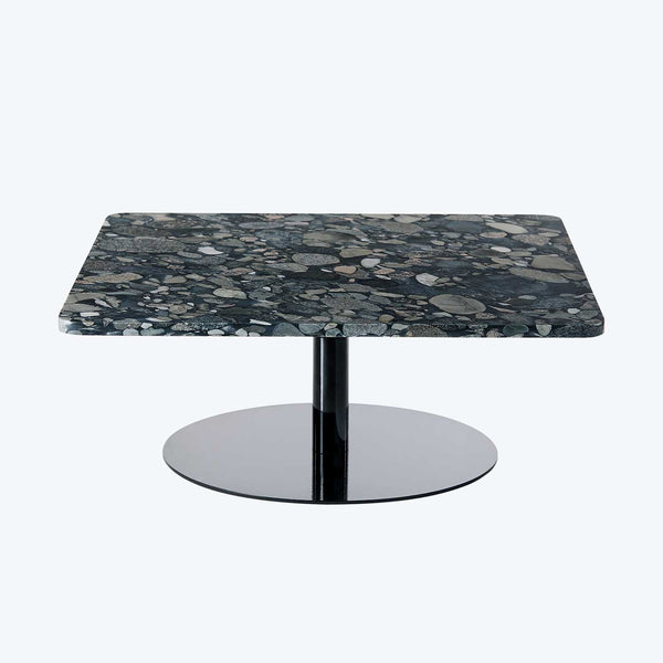 Infuse your space with modern sophistication with Tom Dixon's Square Pebble Table. This table features a sleek glossy black base paired with a stunning stone top made from vibrant marble sourced from the Shandong and Fujian provinces of China. The mesmerizing pattern of the natural marble is a testament to the geological forces at play, developed over millions of years through crustal movement during the lava extrusion process. Designer Tom Dixon's fascination with marble shines through in every aspect of...