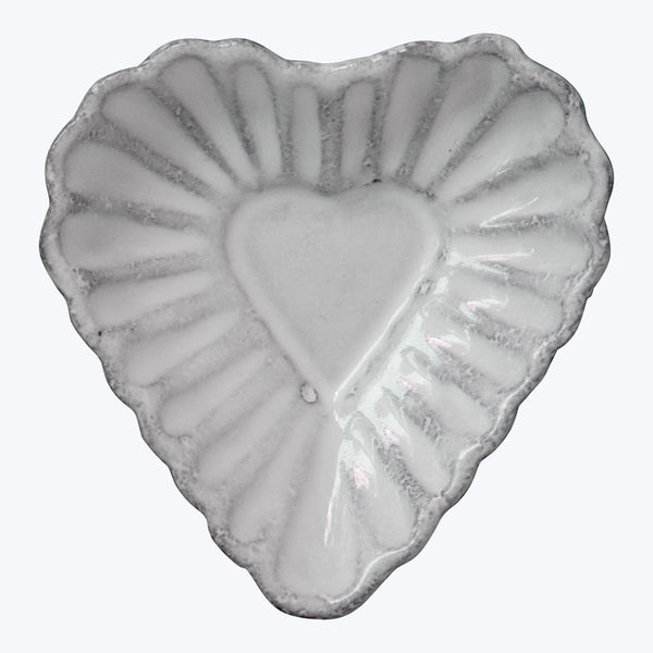 Discover the Peggy Bowl by Astier de Villatte. Featuring a heart and petal motif within a heart-shaped form, this exquisite bowl brings bohemian romance to the table. The Peggy Bowl on Stand is crafted in black terracotta clay and finished in a milky glaze that highlights the bowl’s beautiful texture. Handcrafted in Paris.