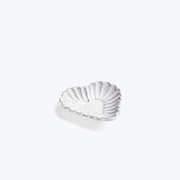 From the heart. Shaped by hand from black terracotta clay, its natural pigments peek through a milky-white glaze. Created on the Rue St. Honore in Paris, each is crafted in a traditional pottery style using ancestral molding techniques passed down from generations. Use for small foods or trinkets.