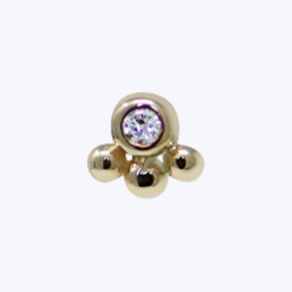 A dainty round diamond is bezel set and adorned with Dew Drop details, and mounted on a gold post. *Earring sold individually
