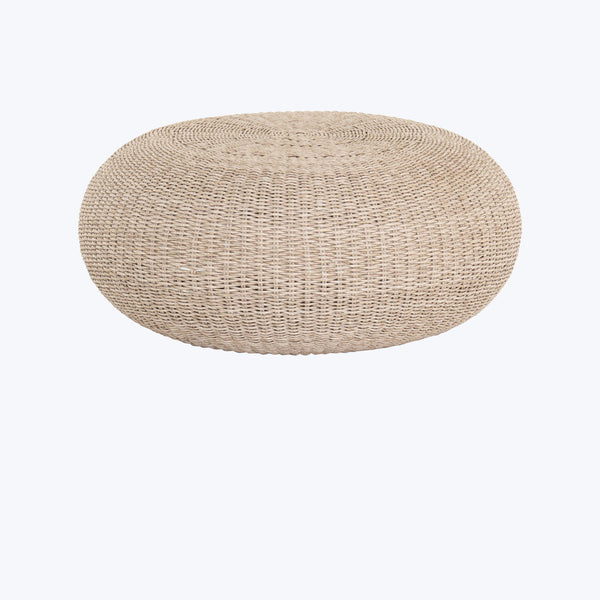 The Phoenix Indoor/Outdoor Coffee Table is crafted from all-weather wicker weaves to cover an aluminum frame, with a soft, rounded shape and vintage white finish.