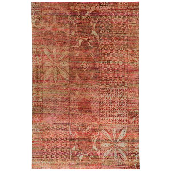 This Pink Alchemy Contemporary Silk Rug measures 8 feet by 12 feet 2 inches, offering a substantial statement piece for any interior. Part of the Alchemy Rug Collection, this hand-knotted rug originates from India, a country renowned for its skilled textile craftsmanship. Constructed from 100% silk, the rug provides a soft texture and a natural sheen that shifts with light. Its design features a distinctive patchwork of various patterns, creating a contemporary aesthetic. Individual blocks showcase diverse motifs, including geometric...