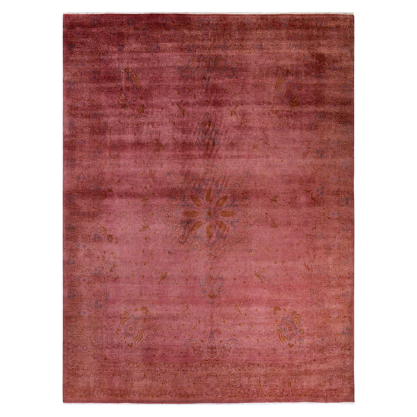 This Pink Overdyed Wool Rug measures 9 feet 4 inches by 12 feet 2 inches, offering a substantial floor covering suitable for various room layouts. It features a unique pink color, achieved through an overdying process that applies a new hue over a traditional rug. Crafted from durable wool, this area rug is hand-knotted, a construction method known for its strength and resilience. It originates from Pakistan, reflecting established rug-making traditions. The overdyed technique subtly mutes the rug's original intricate...