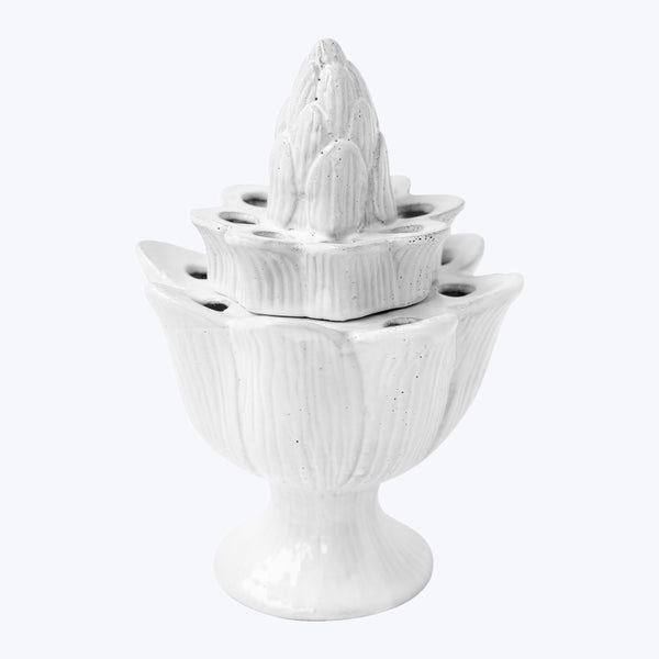 Hand molded from black terracotta, each piece is finished in a milky-white glaze that highlights the unique character of the clay, celebrating its imperfections and ensuring that no two pieces are exactly alike. Romantically bohemian, yet practical for everyday use, these pieces are made in an antique Bastille workshop, historically home to Napoleon Bonaparte's own silversmith.