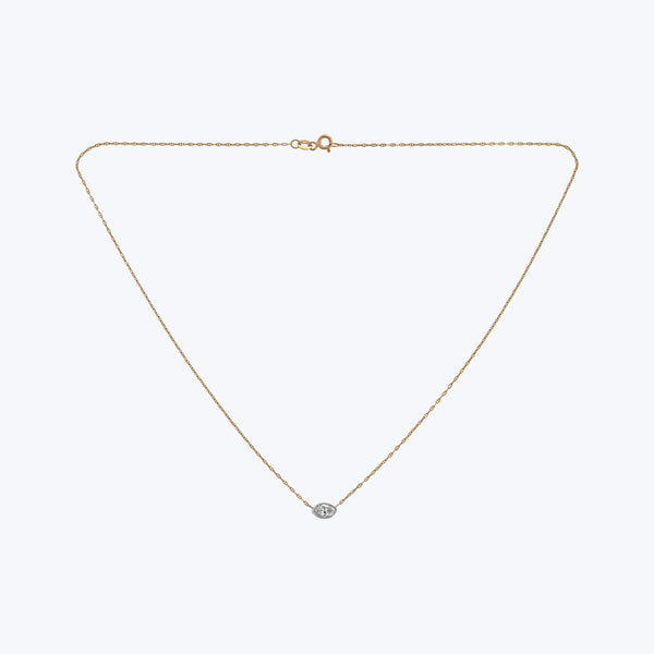 Discover the Plat/14KYG 0.54 ct. Moval Diamond Pendant by Jewels by Grace. Featuring a single moval-cut diamond, this refined necklace exudes understated elegance. An exquisite piece, full of quiet impact. Crafted in the USA in 14K gold and platinum.