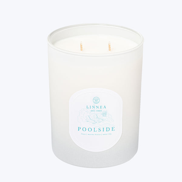 Experience the cool after-swim sensation with LINNEA's POOLSIDE Candle. Infused with notes of linen, water lily, and marine breeze, this refreshing candle will transport you to a hidden luxury retreat. Pair with RAINFOREST PALMS or BANANA WILD. LINNEA candles are poured in small batches and crafted with renewable soy wax, all-natural cotton wicks, and the highest quality fragrant oils. All LINNEA home fragrances are non-toxic, eco-friendly, and cruelty-free. Sustainably made in the USA.