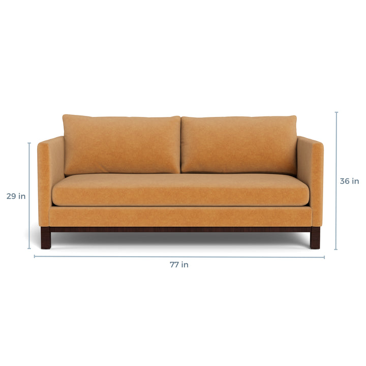 - Dimensions 77" W x 38" D x 36" H | Seat Height: 18" H | Seat Depth: 23" D | Back/Arm Height: 29" H